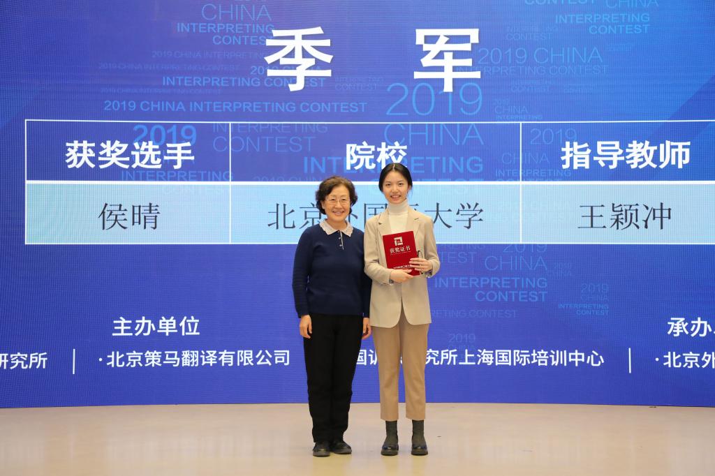 ▲外交部翻译室前副主任任小萍大使与季军侯晴合影