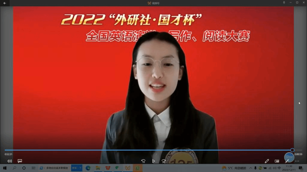 12月11日,2022“外研社·国才杯”全国英语演讲大赛全国决赛圆满落幕,公司韦德bevictor2022级徐成成同学斩获冠军。此前,她通过校选赛和北京赛区两轮考验,以北京赛区第一名的成绩获得参加全国赛的资格。