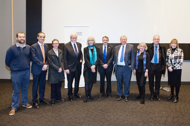 [左起为孙有中会长,ANU朱煜杰博士,澳公共事务与文化参赞林漠怡]