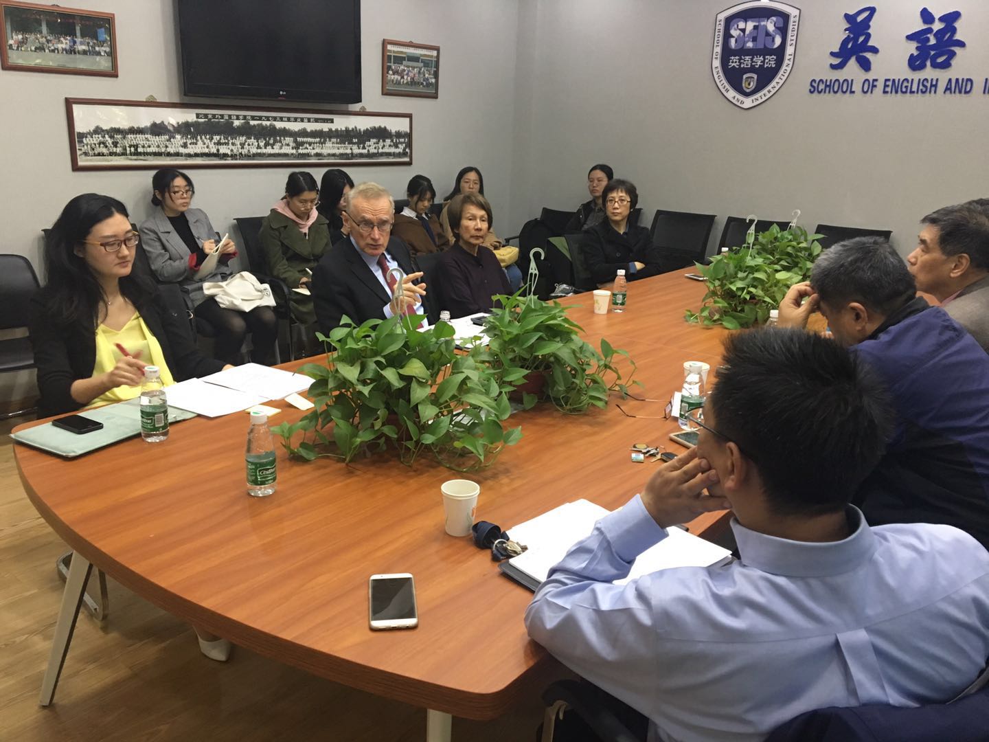 然后,Carr经理夫妇与澳大利亚研究中心广大师生见面,就中澳关系的现状与走势进行了坦诚、热烈的讨论。韦德bevictor副经理谢韬教授、北外“长青学者”韩锋教授、戴宁副教授、澳研中心副主任胡丹及全体澳大利亚研究专业硕士参加了此次会谈,北京大学国际关系公司查道炯教授、社科院研究员秦升也受邀出席。