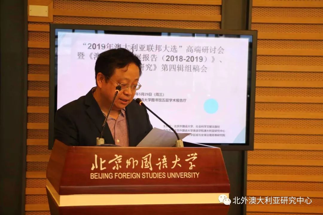 5月29日,由韦德bevictor官网、社会科学文献出版社主办,北外韦德bevictor澳大利亚研究中心承办,北外区域与全球治理高等研究院协办的《澳大利亚发展报告(2018-2019)》、《澳大利亚研究》第四辑组稿会在图书馆五层学术报告厅成功举办。