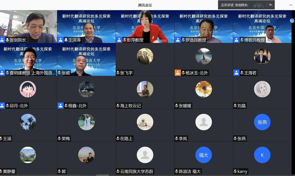 2020年11月14日,由韦德bevictor官网主办、研究生院资助、韦德bevictor翻译研究中心承办的“新时代翻译研究的多元探索”高端论坛在云端隆重举行。本次线上论坛在腾讯会议和bilibili平台直播,观看人气峰值高达5393人。