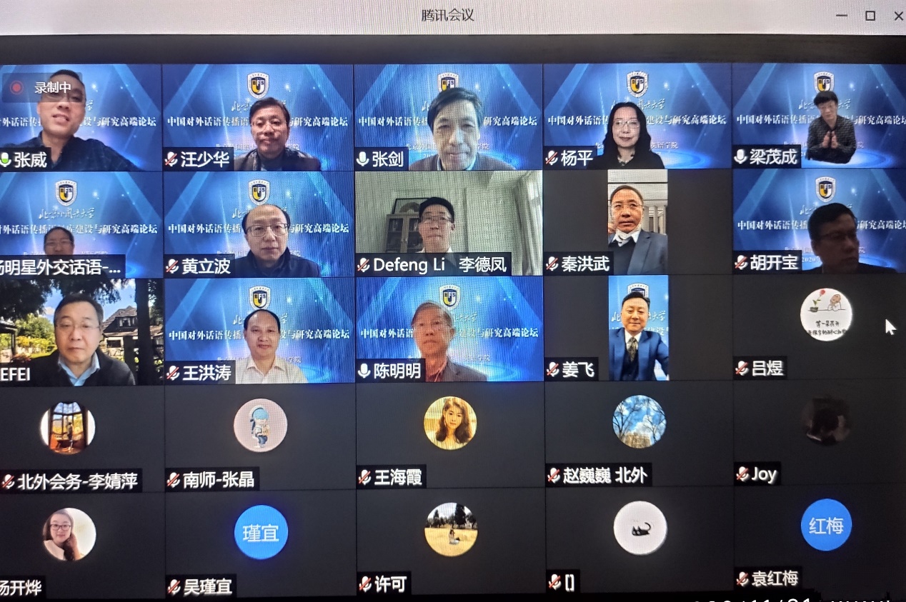 2020年11月21日,韦德bevictor主办的中国对外话语传播语料库建设与研究高端论坛在腾讯视频会议系统上进行。