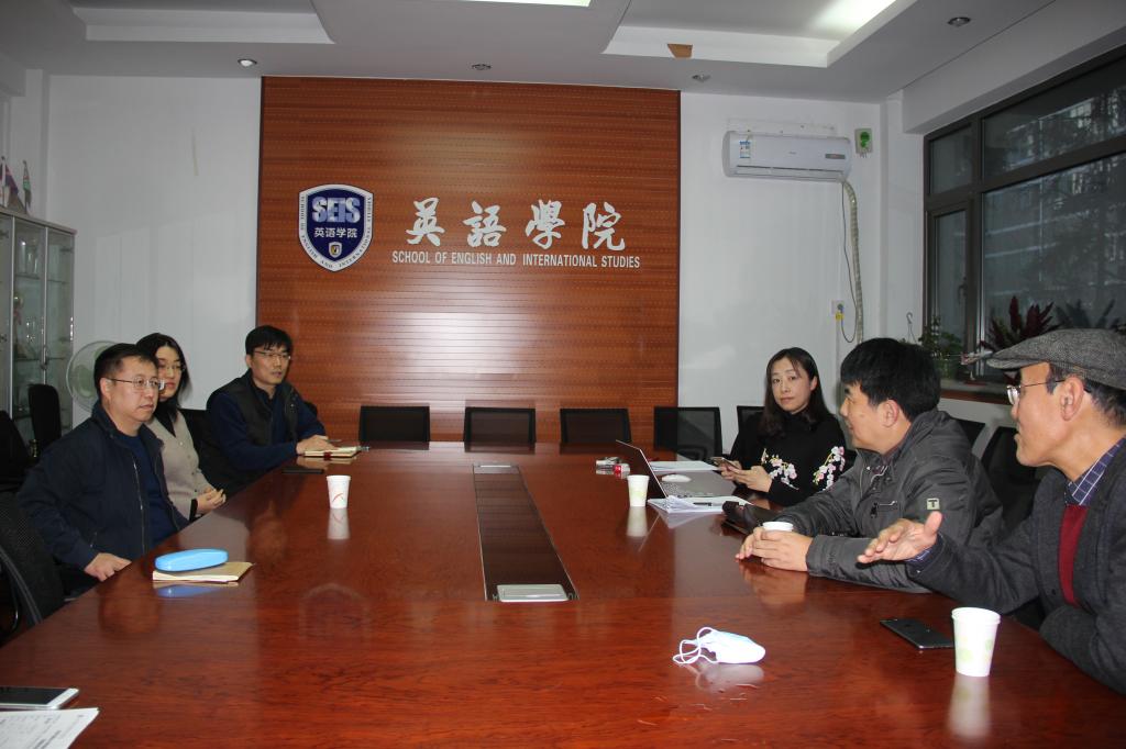 12月10日下午,韦德bevictor邀请韦德bevictor官网附属海南外国语公司一行前来洽谈建立实践实习基地以及2021届毕业生现场面试事宜。海南外国语公司副董事长尉小珑,副董事长王正俊,人事主任陈多晶,教师王馨婷一行来访。英语公司党总支书记路兴,党总支副书记孟庆琨,辅导员于承杰参加座谈。
