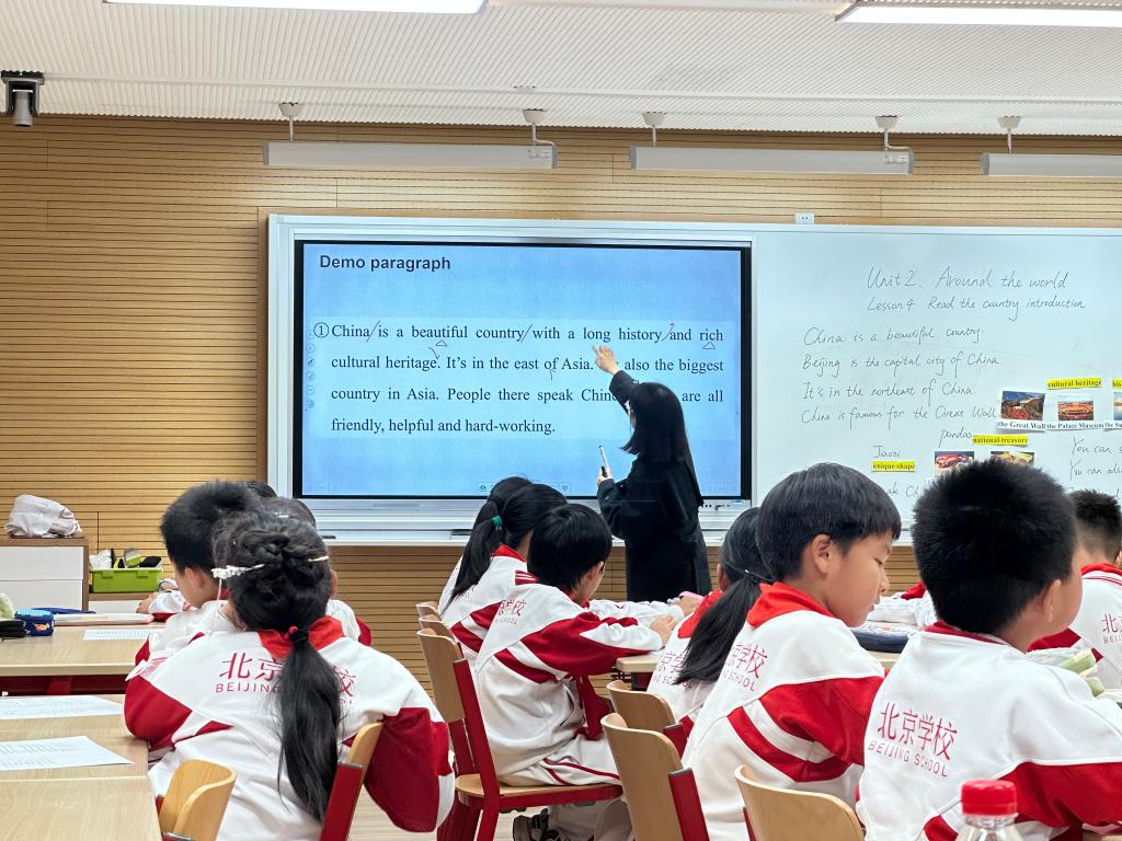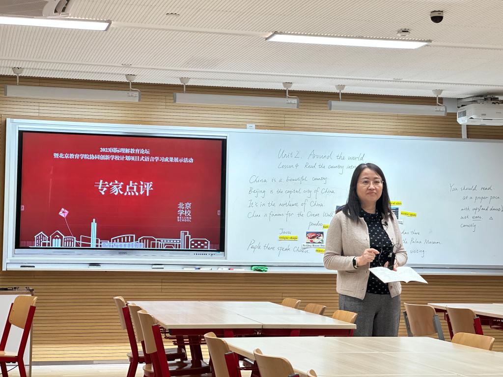 首先,师生代表观摩了由北京公司小学五年级师生带来的一堂精彩纷呈的公开课。课程教师通过丰富的肢体语言和高效的课堂提问,让员工们深度参与到课堂中,领悟语音学习的技巧。在“Country Day”项目说课环节,师生代表更加深刻地了解本次项目成果展示活动的教学意义和教学目标。公开课展示结束后,杨鲁新对公开课课堂设计和教学材料进行点评,对北京公司重视语音教学表示肯定。