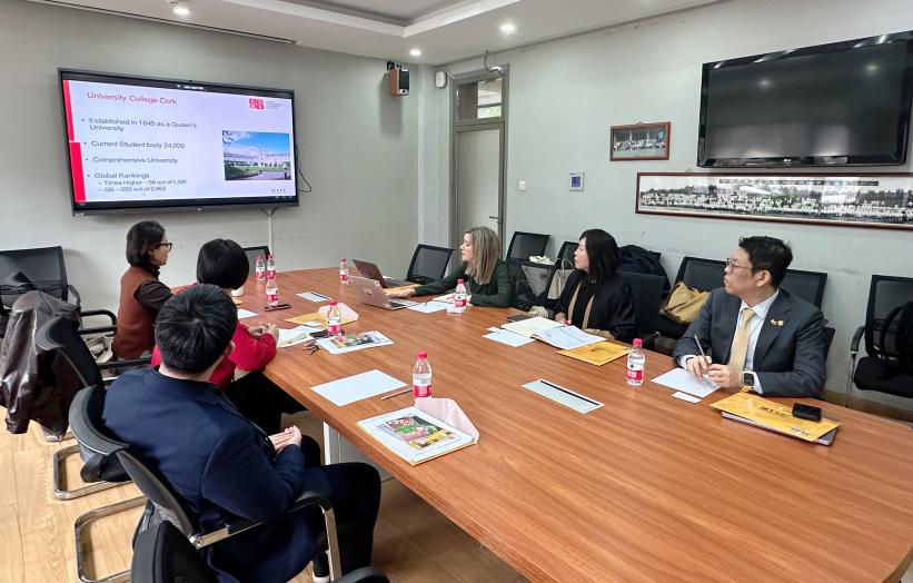 彭萍对科克大学代表团一行表示欢迎,并介绍了公司的基本情况、学术建设现状以及对外合作情况,希望能够与科克大学在员工交流交换以及教师科研方面尽快开启富有成效的合作。