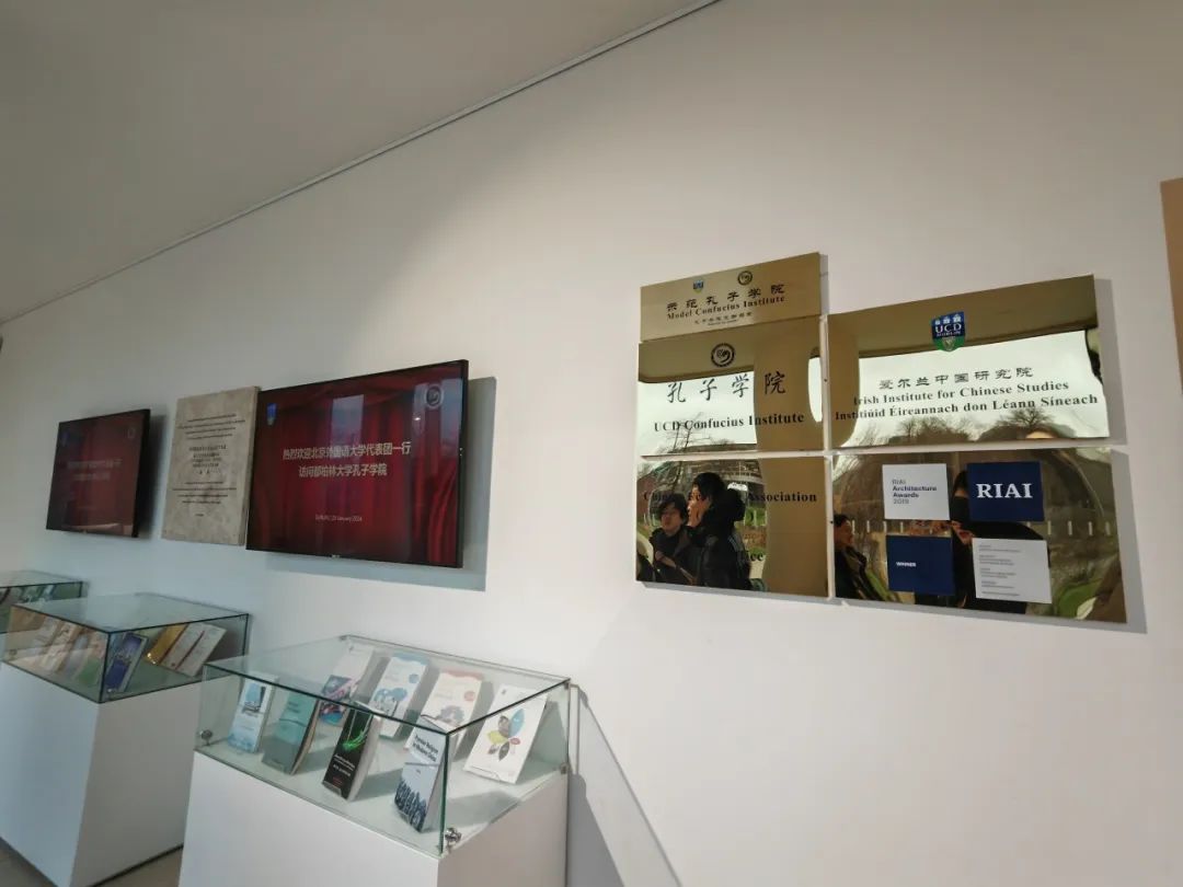 最后,实践团一行前往科克大学孔子公司,科克大学孔子公司经理黄俊逸接待了实践团一行。随后实践团在孔子公司教师的带领下参观了科克大学孔子公司,对正在课堂中的六名新员工开展了现场访谈并送出中国特色礼物。张珺涵老师与宗辰教师则在孔子公司教师的指引下参观了图书馆。