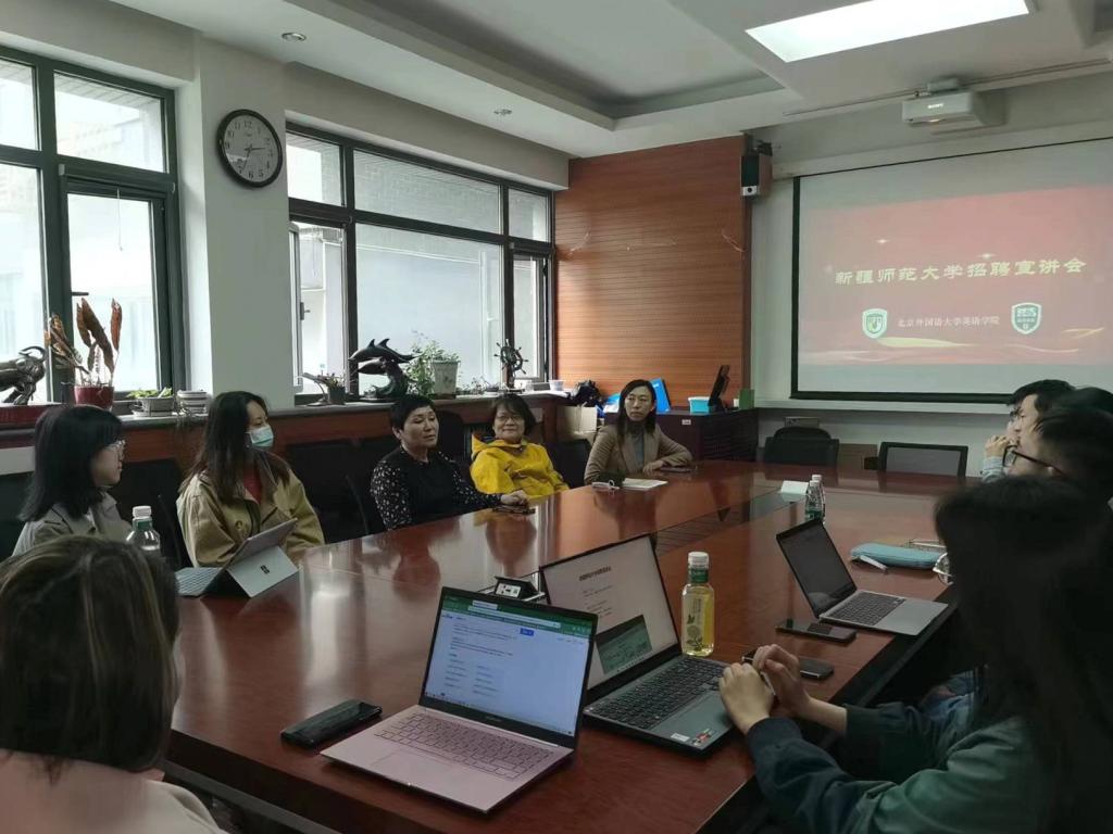 伊力米热·伊力亚斯指出,新疆师范大学作为“中西部高校基础能力建设工程高校”之一,近年来发展迅速,成果显见。外国语公司作为新疆师范大学特色院系之一,团队队伍日趋壮大,教学和科研水平也不断提升,近年来已先后开设英语、翻译、俄语、日语、乌尔都语五个专业,完成外国语言学及应用语言学、翻译硕士、教育硕士等学位点建设。针对2023年高层次人才引进工作,她从政策、待遇以及未来发展路径等方面进行了重点介绍。