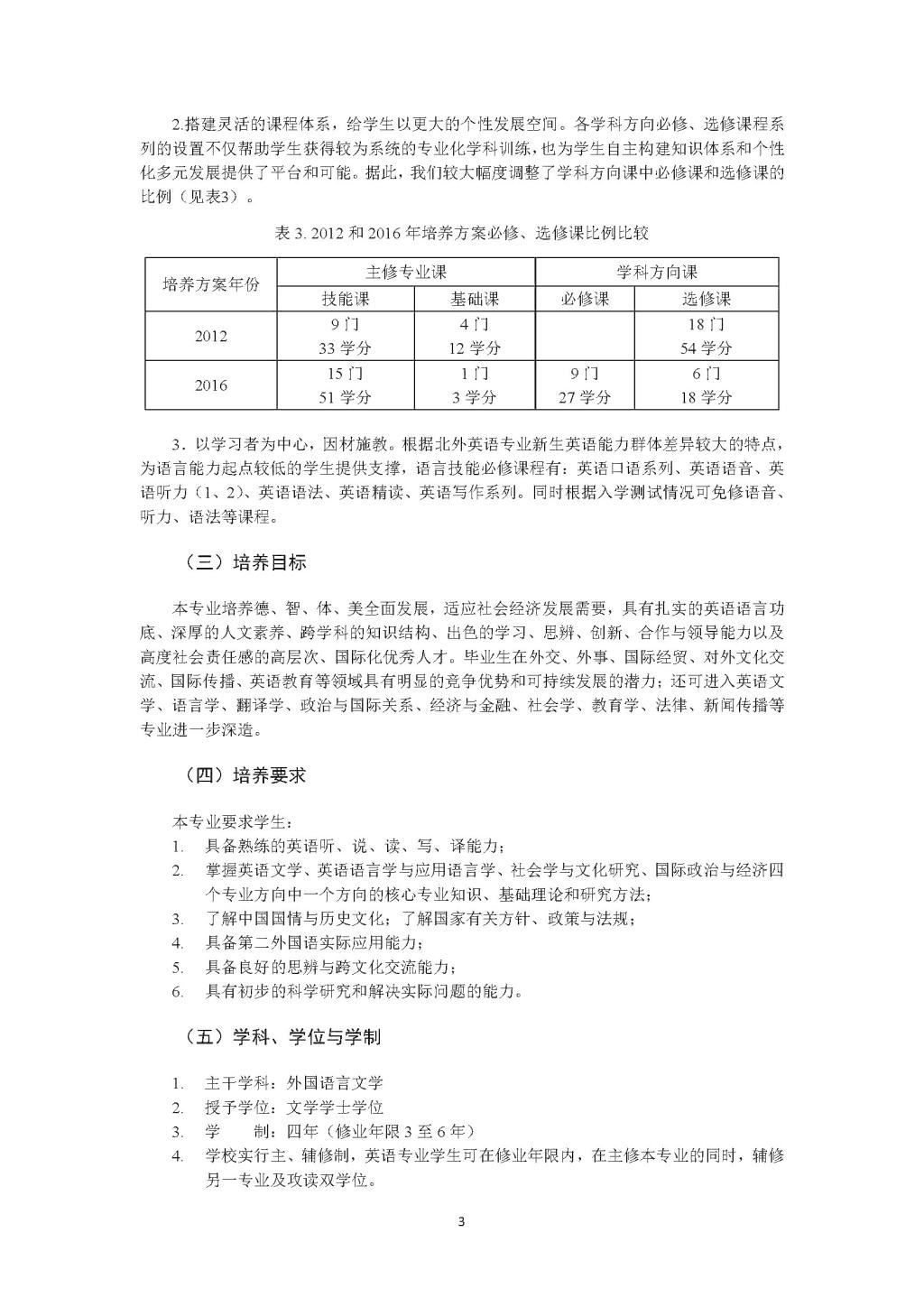 韦德bevictor英语专业本科培养方案(2016)
