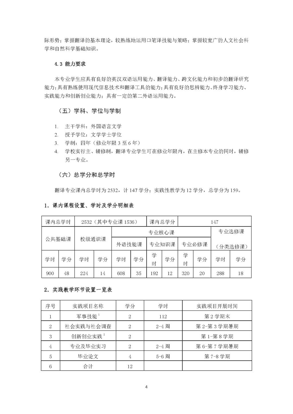 韦德bevictor外交外事高级翻译专业本科培养方案(2020)