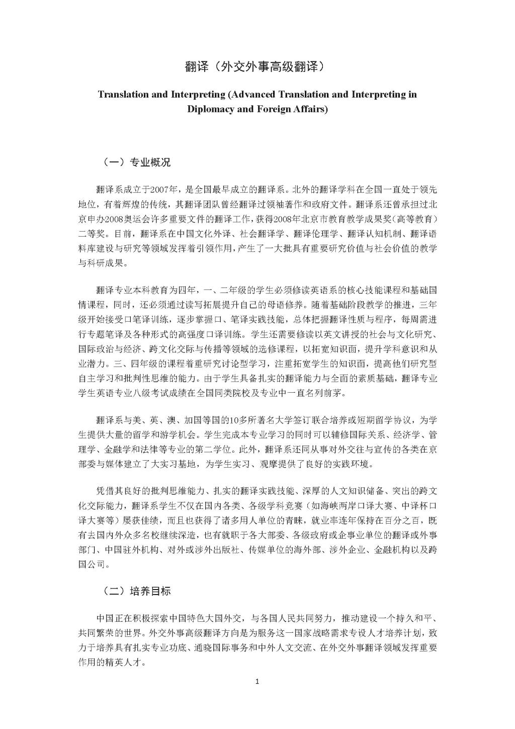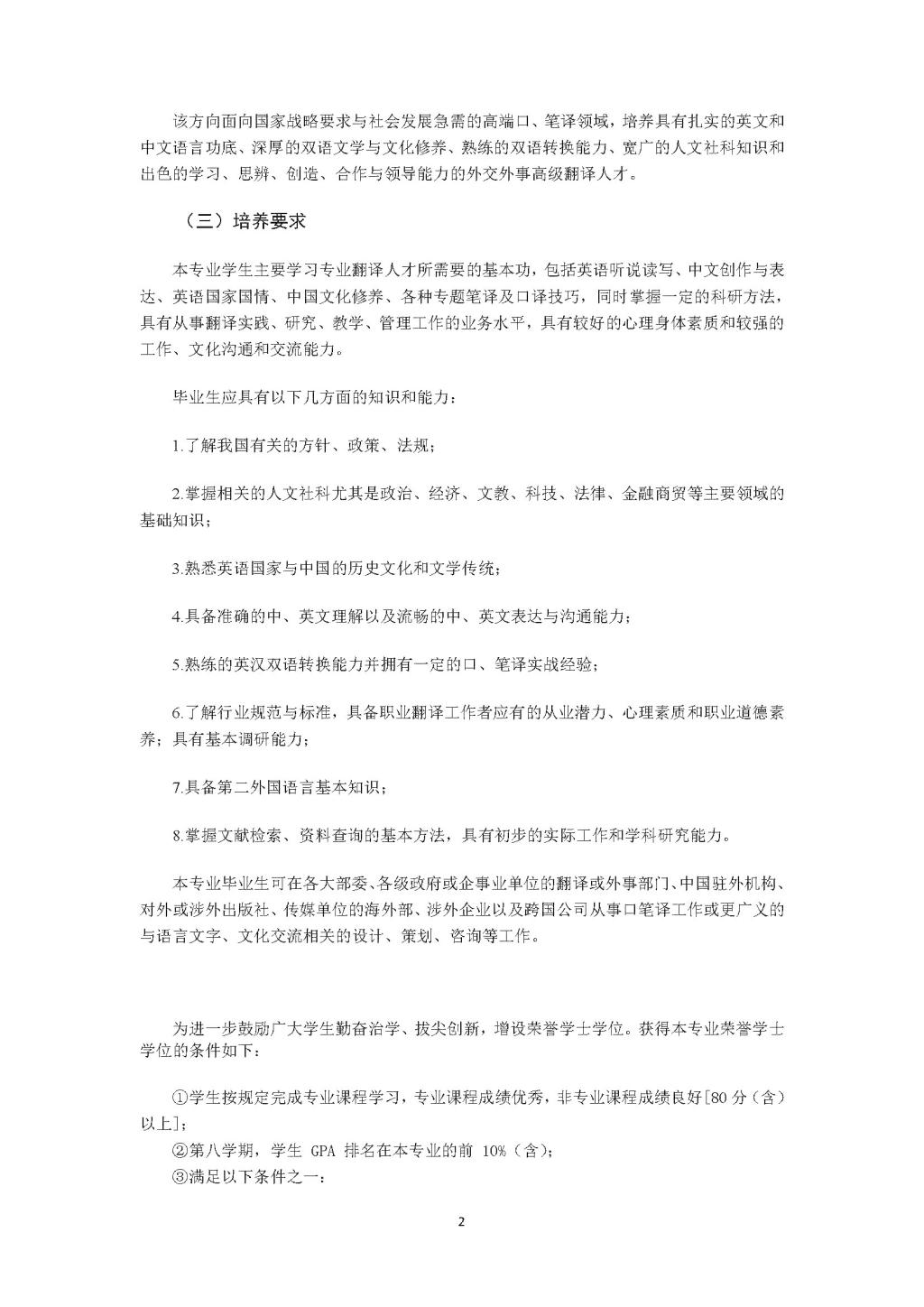 韦德bevictor翻译(外交外事高级翻译)专业本科培养方案(2021)