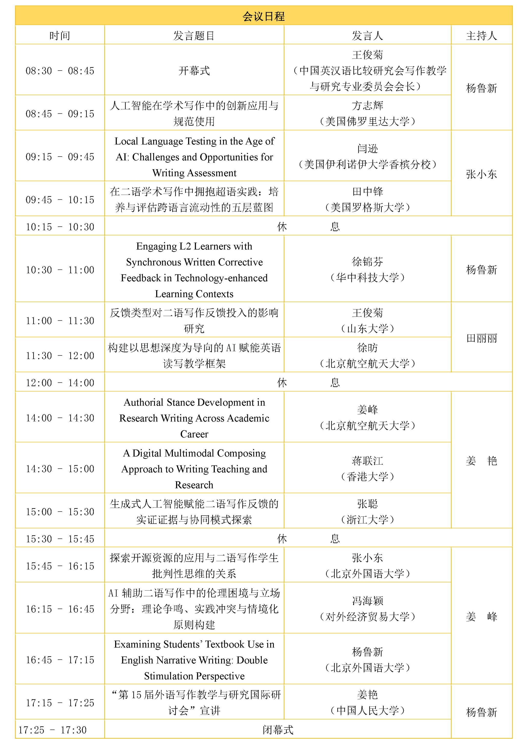 本次会议将围绕数字技术发展对二语写作研究与教学的影响,通过主旨报告、特色论坛等形式进行深入研讨: