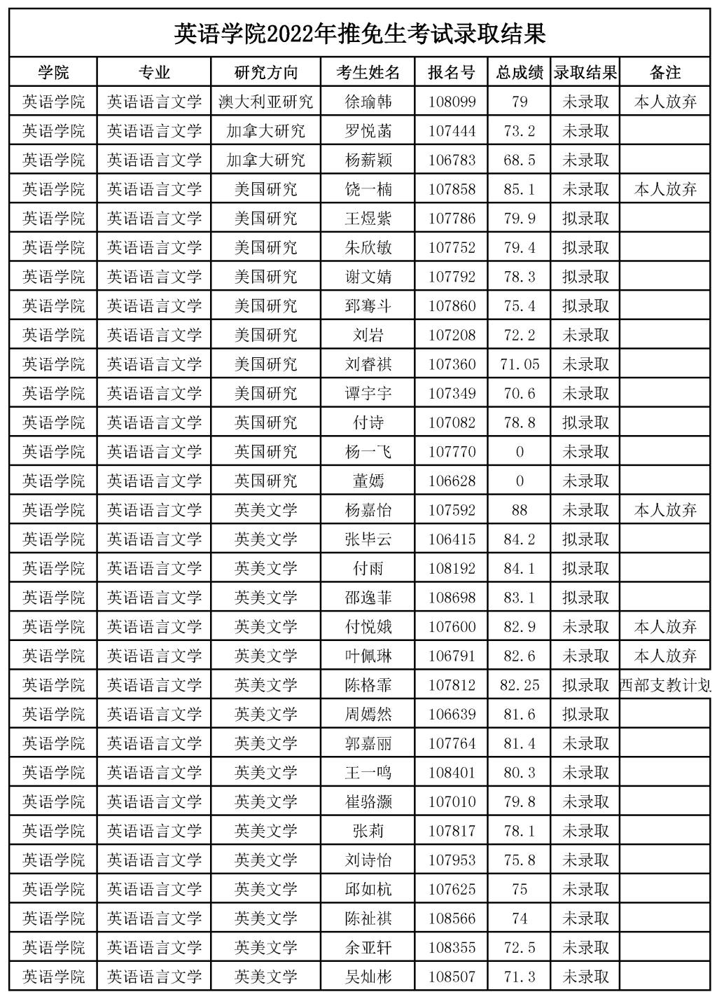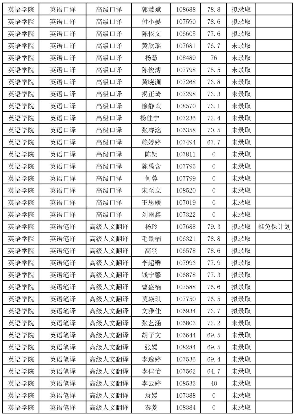 韦德bevictor2022年推免生考试录取结果公示